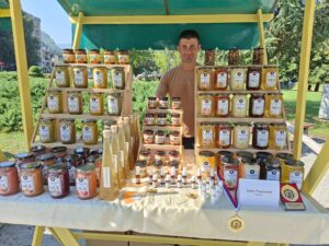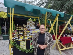 „Углавном излажемо све пчелиње производе, мед и препарате на бази меда, мешавине за имунитет, полен и прополис, борове иглице у меду. Пошто имамо и засад лековитог биља, онда користимо и то мешамо са пчелињим производима, правимо мелеме и креме. Ово је изузетно добра прилика, не само да нас људи упознају, него и да разменимо искуства и упознамо се са колегама. Овде и купци имају предност што могу да пробају производе и оцене да ли им одговара или не. А ове године смо први пут у Пријепољу“, објаснила је Јасмина Вајић.