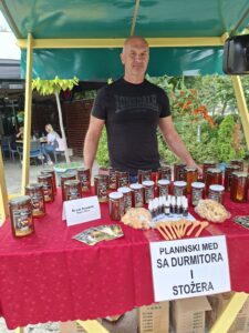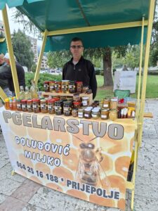 „Овде учествујем већ можда десетак година. Значи нам ово више излога ради, а понешто се и прода. Двадесет две године се већ бавим пчеларством. Производим ливадски мед, багремов, сунцокретов, као и полен, прополис, мед у саћу, медовачу. Пчеле ми у Седобру зимују, а у сезони буду у Црквеним Тоцима“, рекао је Миљко Голубовић, пријепољски пчелар.