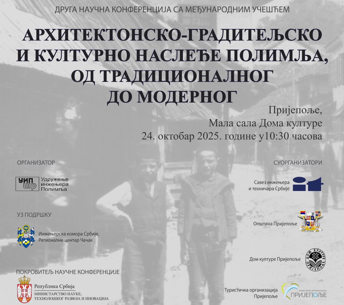 Пријепоље ће 24. и 25. октобра бити домаћин Друге научне конференције под називом „Архитектонско-градитељско и културно наслеђе Полимља, од традиционалног до модерног“, која ће окупити стручњаке, истраживаче и љубитеље културног наслеђа из целе Србије